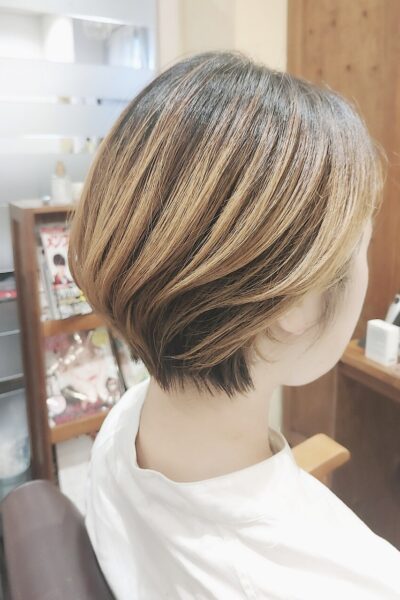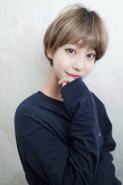 大人可愛い エアリーウェーブ前髪なしショートボブ