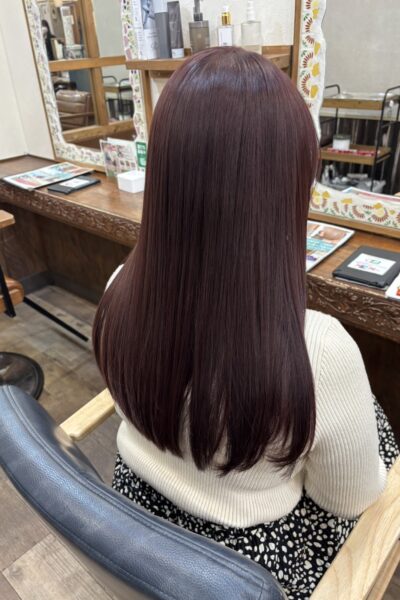 【西新井】切りっぱなしミディアム/暖色カラーカシスレッド