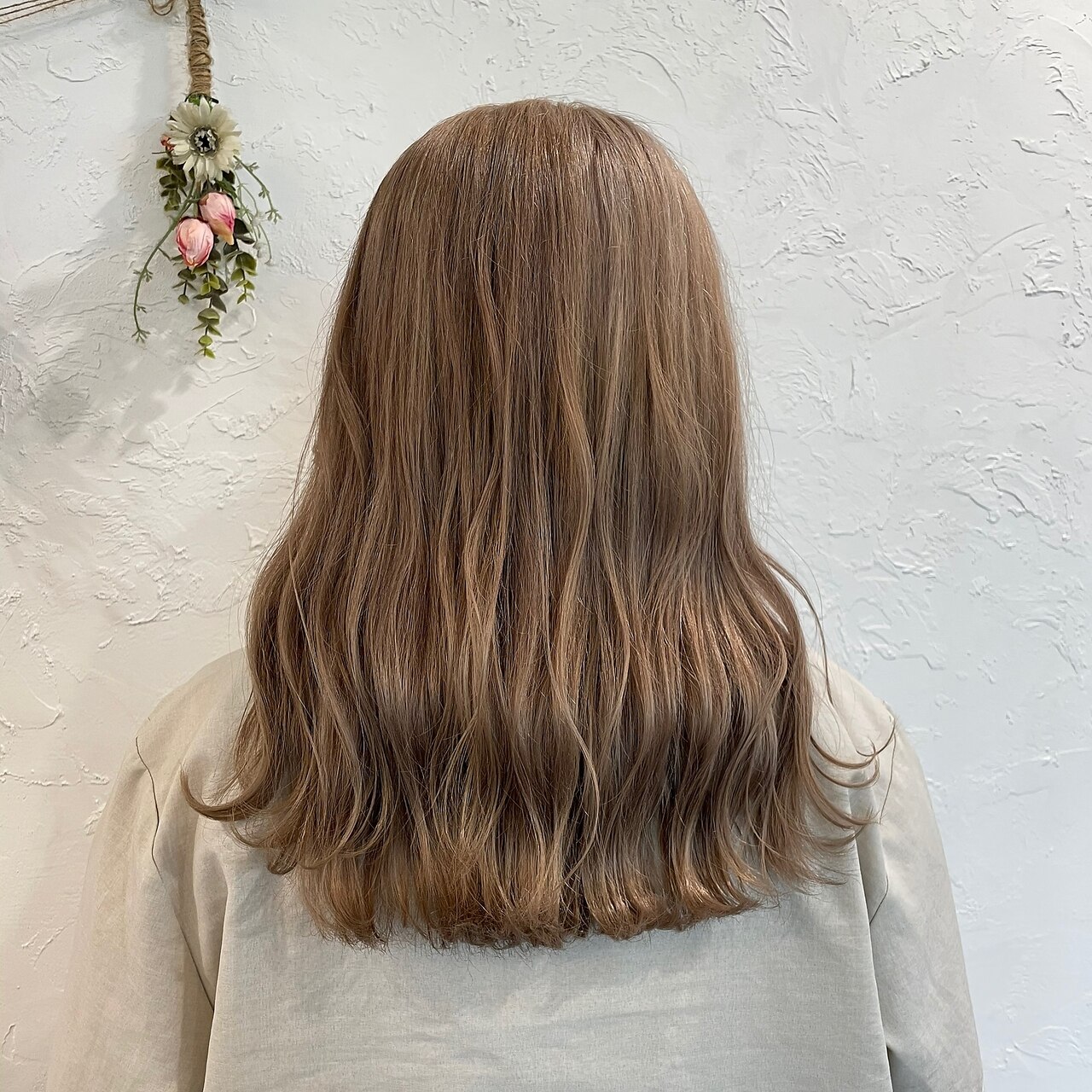 2回のケアブリーチで、しっかりベースを整えて 色が抜けても可愛いミルクティーベージュに♡