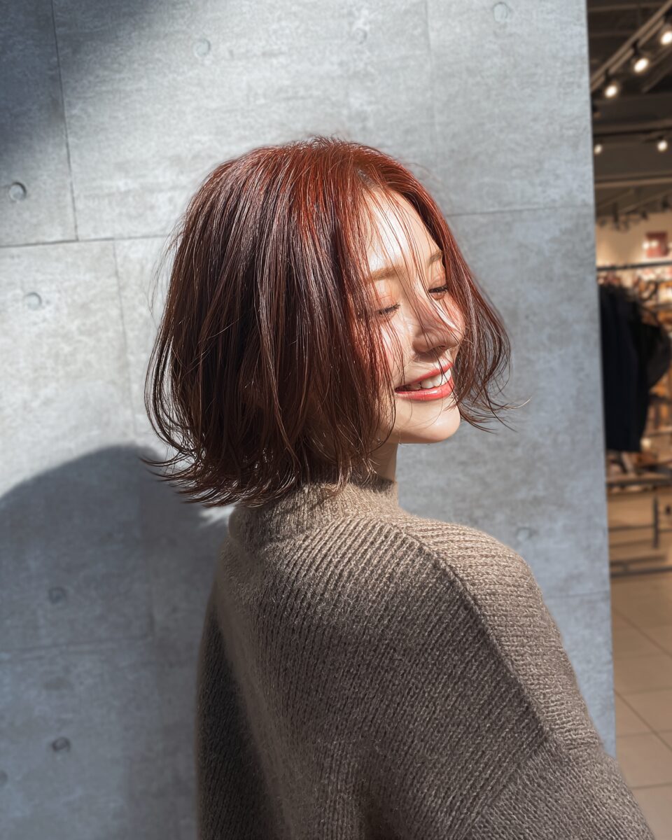 大人気の暖色カラーと動きのあるボブヘアーで この季節にオススメな軽さのあるスタイルです