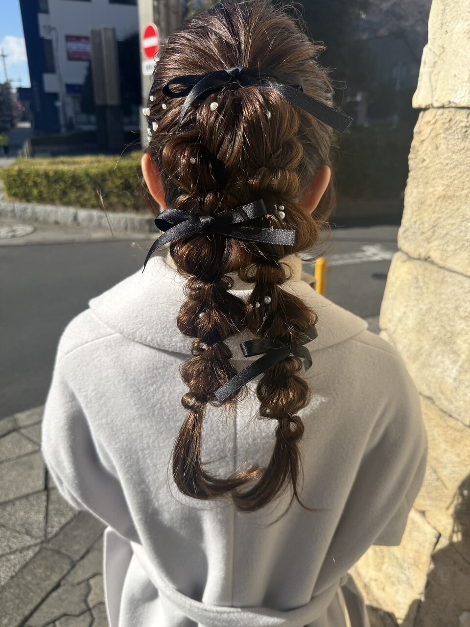 ポニーテールをツインでリボンアレンジ!結婚式や成人式などどのシーンにも活用できます! 是非チャレンジしてみてください!