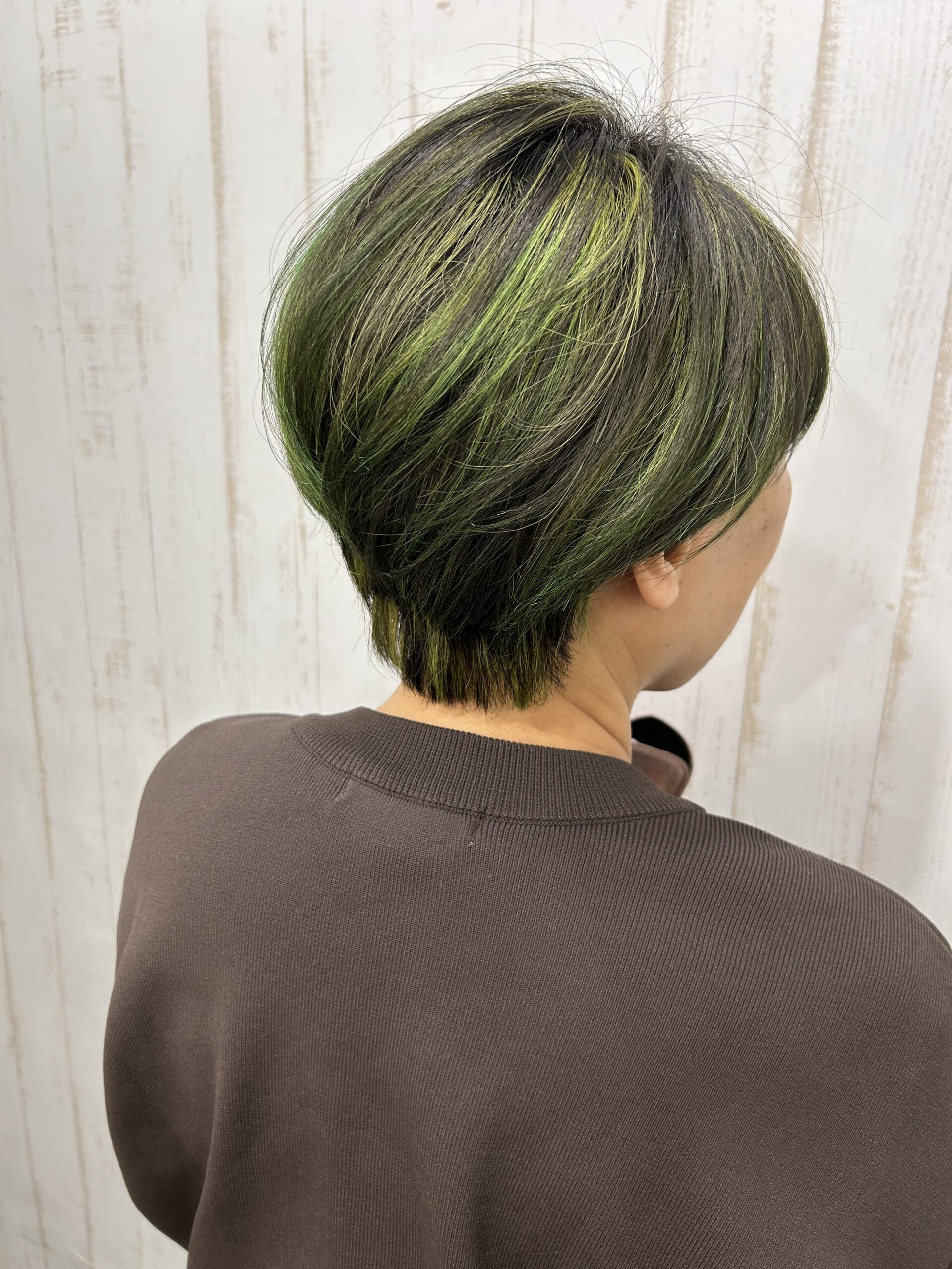 ハイライトを大胆に入れて、そこにグリーンのマニキュアをオンカラーしました! 周りと差をつけたい方、変化を楽しみたい方是非ご相談下さい!