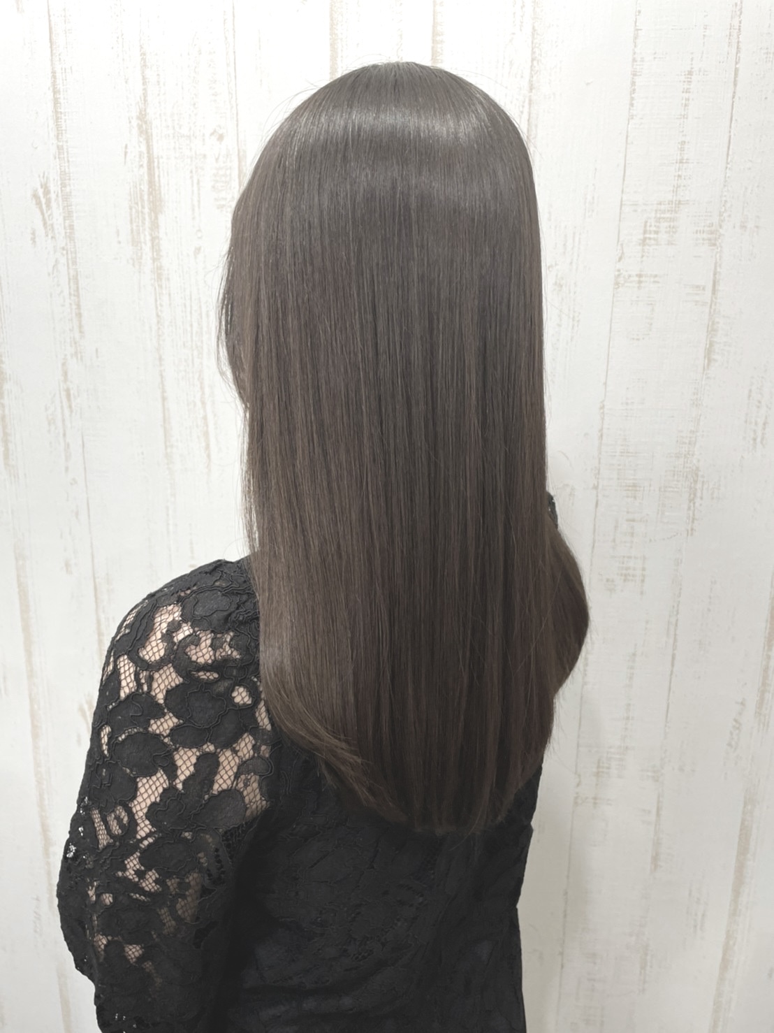 自然な艶と滑らかな質感が魅力のロングストレート。髪質改善トリートメントで内部から潤いとハリを与え、毛先までまとまる上品な仕上がりに。落ち着いたモノトーンカラーで大人の洗練された印象を演出します。